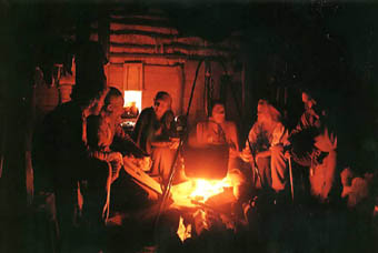 Additional uses of objects will be revealed either by additional links when they are examined or in some other way whenever appropriate (you might not know that the steel is used to make fire with, unless you bring it with you when you examine the fire). As you explore the hall, time passes - the amount of ambient light varies, lights go out etc. |